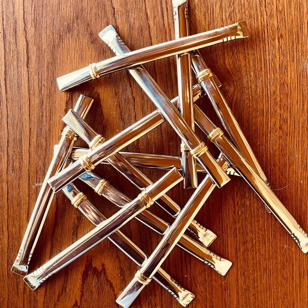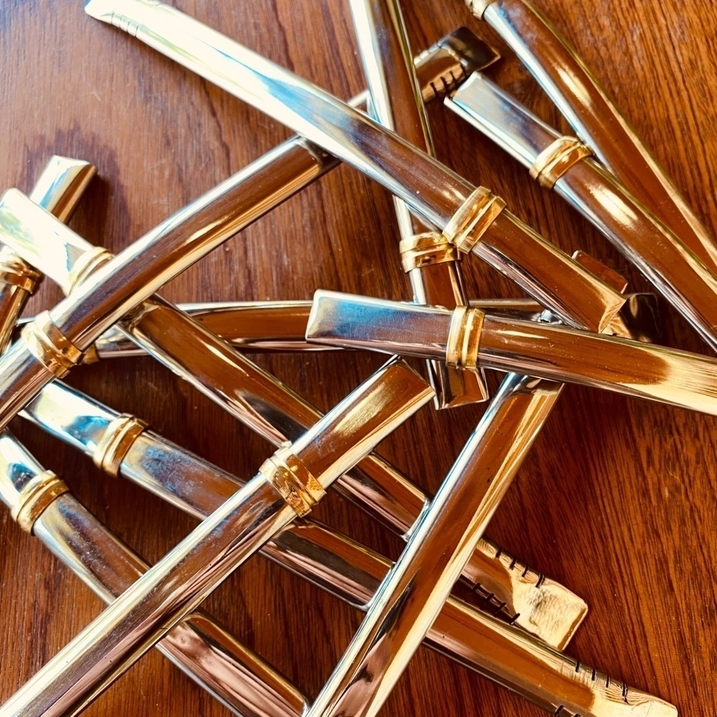 Bombilla de acero inoxidable diseño chata con corte con virola de bronce.